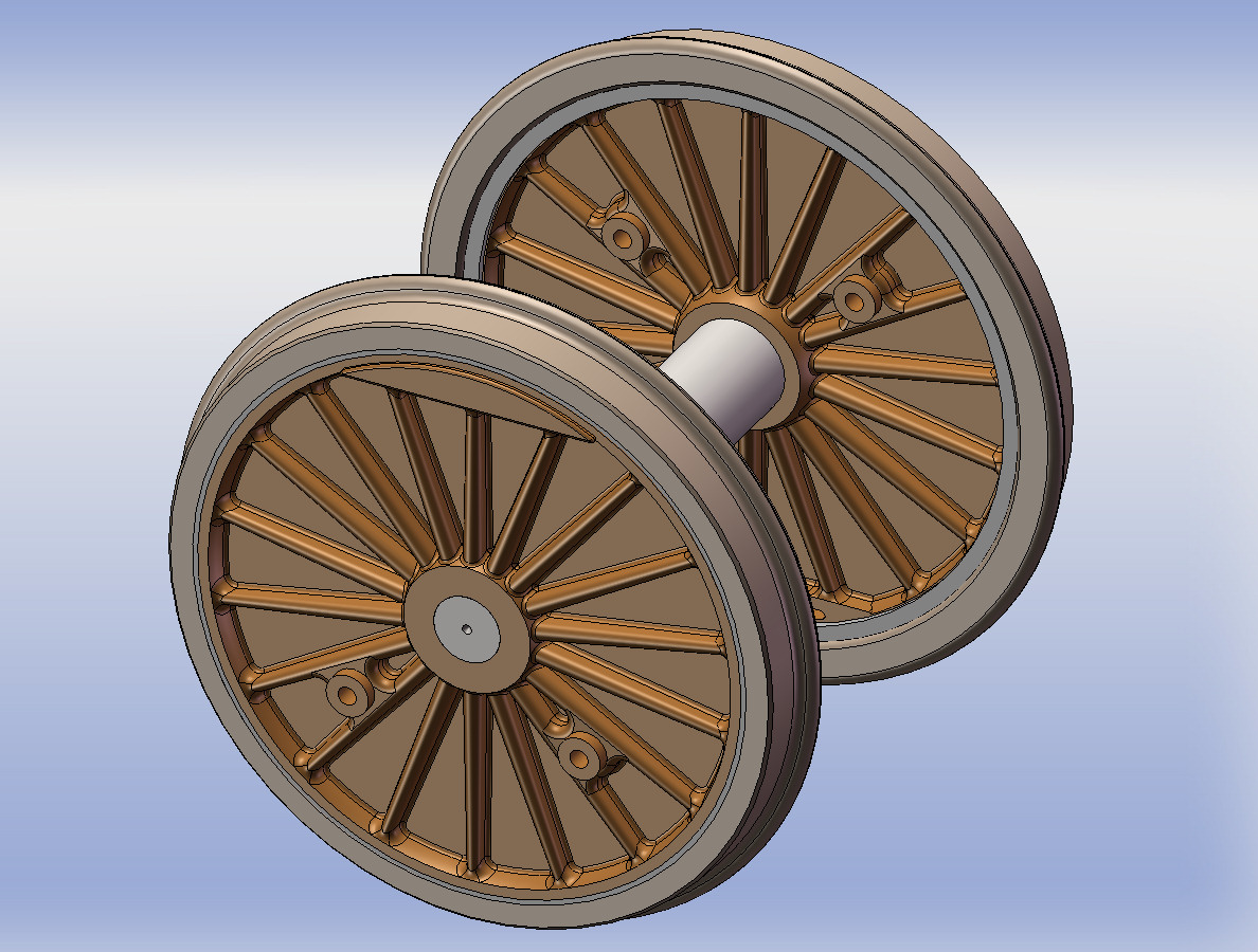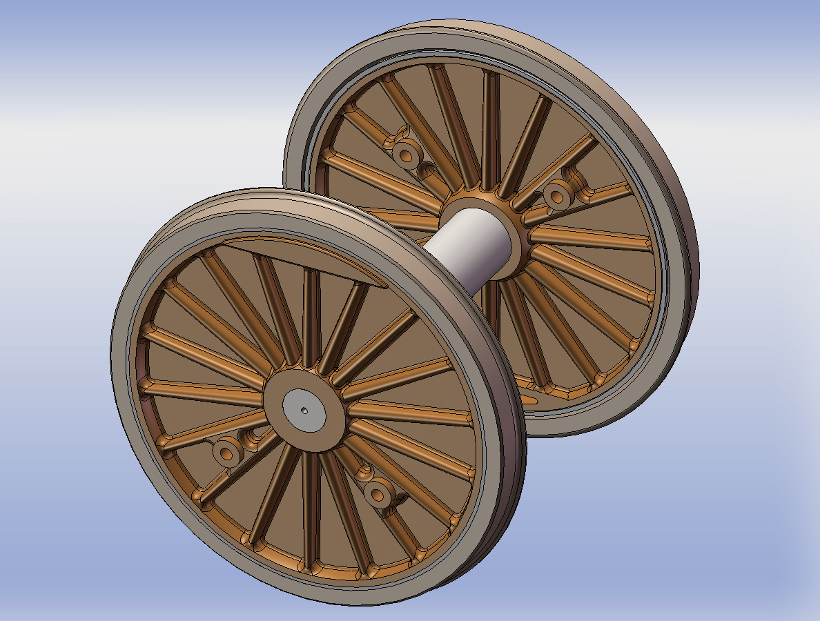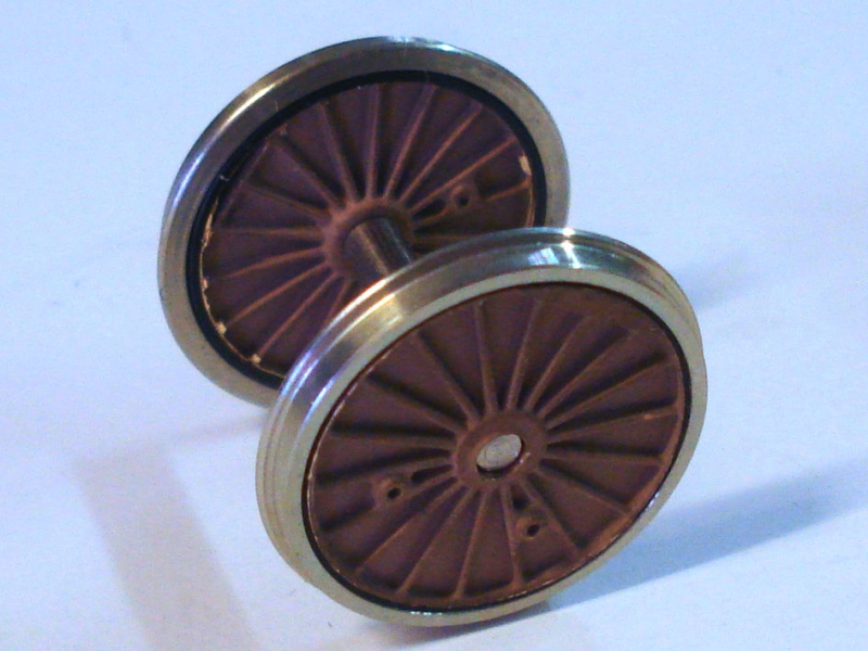 Cet essieu de 1750 mm à 18 rayons de notre collection Les roues représente l'essieu moteur de la 2D2 5105 ex PO E.705 avec son voile plein caractéristique et son double maneton pour la transmission Büchli.