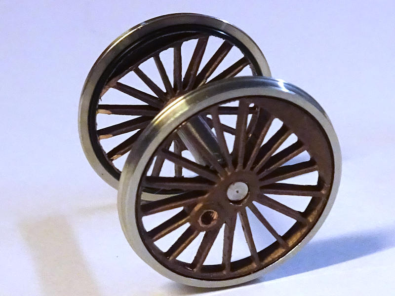 Cet essieu de 1900 mm à 18 rayons de notre collection Les roues représente l'essieu moteur n°3 de la 3.1200 Nord / 2.231C.Rayonnage, bague isolante et bandage monté, axe fourni.Photo : variante RP25-88 et douille de montage.